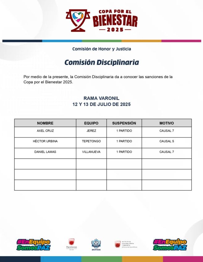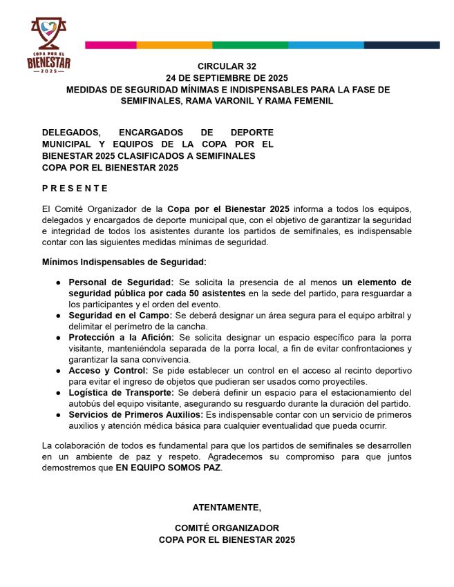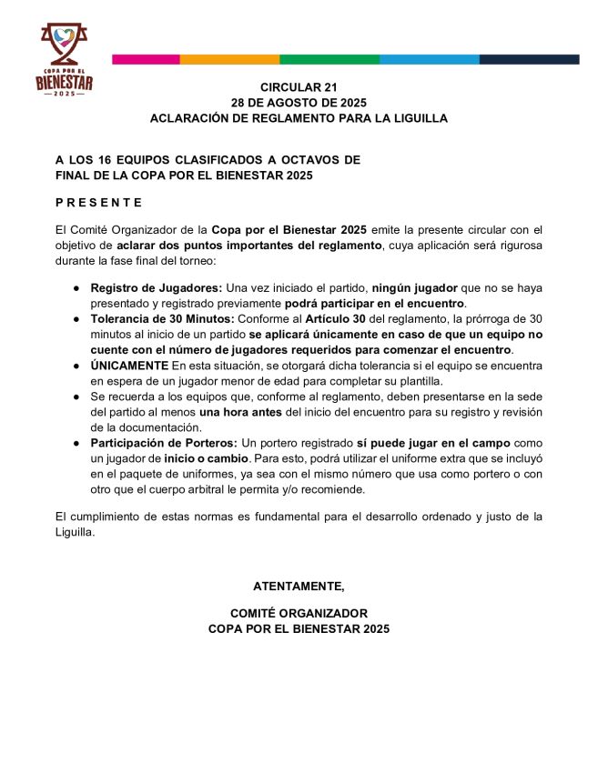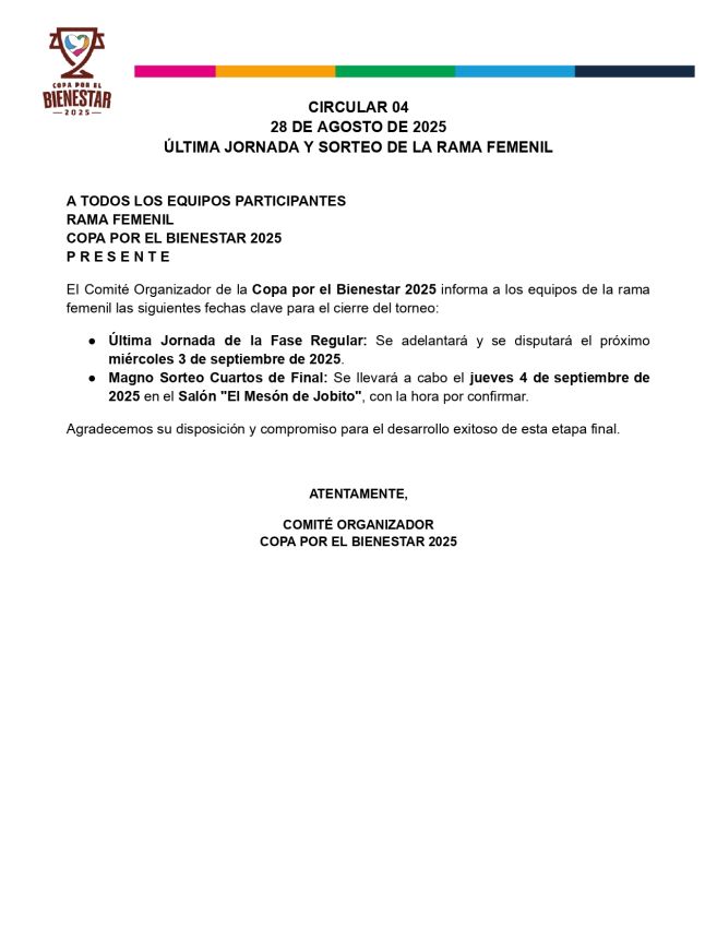 Recordatorio Importante: Tienen esta semana para entregar toda la documentación pendiente. Pueden hacerlo de dos formas: • Subir los documentos a la carpeta de Drive de su municipio. • Enviar los documentos directamente a este WhatsApp. ¡Es indispensable que incluyan la documentación completa de todos sus jugadores! Si eligen enviar por WhatsApp, nosotros nos encargaremos de subirla a su expediente. ⚠️ Fecha Límite Final para toda la documentación: 22 de junio ⚠️ Agradecemos su pronta atención y colaboración. Saludos