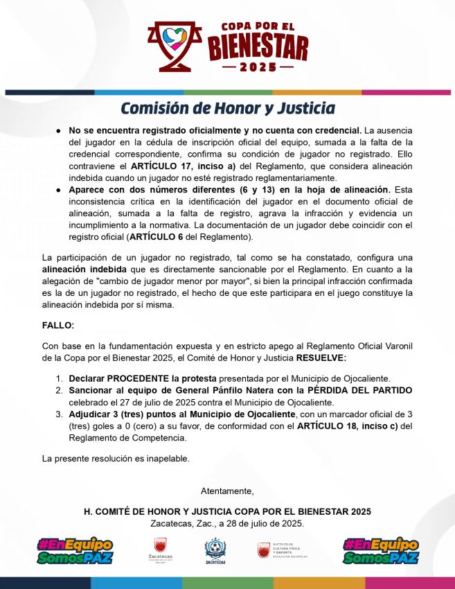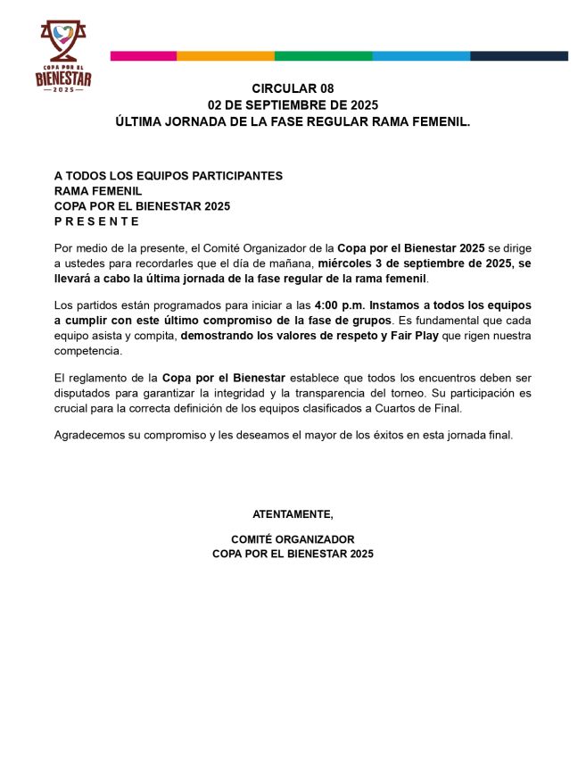 Recordatorio Importante: Tienen esta semana para entregar toda la documentación pendiente. Pueden hacerlo de dos formas: • Subir los documentos a la carpeta de Drive de su municipio. • Enviar los documentos directamente a este WhatsApp. ¡Es indispensable que incluyan la documentación completa de todos sus jugadores! Si eligen enviar por WhatsApp, nosotros nos encargaremos de subirla a su expediente. ⚠️ Fecha Límite Final para toda la documentación: 22 de junio ⚠️ Agradecemos su pronta atención y colaboración. Saludos